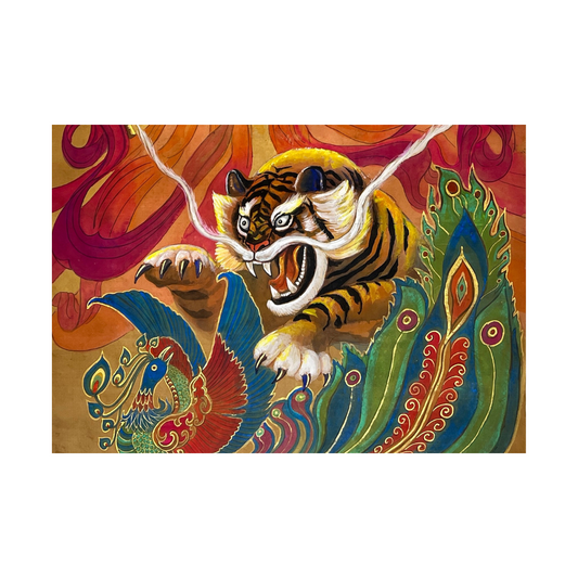 Brave Tiger, Chinese Tiger, Phoenix, Fine Art Print, Chinese Watercolor, Animal Print, AAPI, Asian Gift