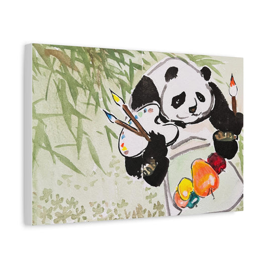 Artist Panda, Matte Canvas, Stretched, 0.75", Print of Watercolor painting by artist Xiang Li, Panda lover gift, Nursery Wall art