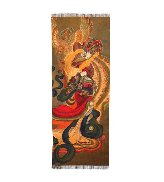 Elegant Light Scarf, Chinese Empress, Print of watercolor painting, Phoenix and Dog Motifs, Women Fashion Scarf, Chinese New Year gift