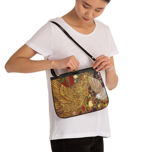 Small Shoulder Bag | Golden Phoenix, Roses, Peonies | Water color painting design by artist Xiang Li | Lunar New Year gift