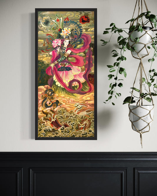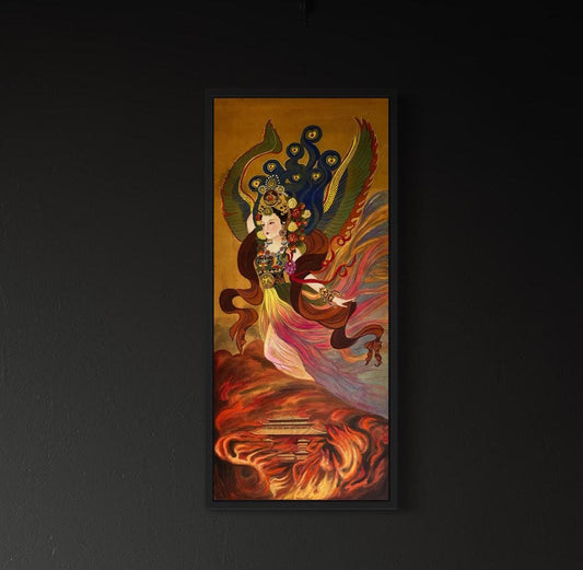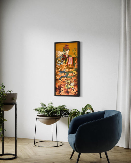 Empress Wang (Han Dynasty), Stretched Canvas Print, Chinese Art Canvas, featuring fire and wings, Ready to Hang, Installed with D-Ring and Wires