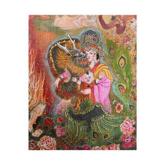 Asian Mythical Dragon Goddess Puzzle 520-Piece | Temple Art Jigsaw | Chinese Empress | Watercolor