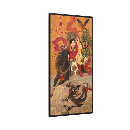 Mythical Warrior Horse Riding Dragon Matte Canvas Framed | Asian Fantasy Wall Art | Chinese Empresses