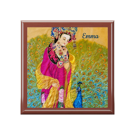 Chinese Empress with Peacock Watercolor Art Print, Wooden Jewelry Box | Personalized Option