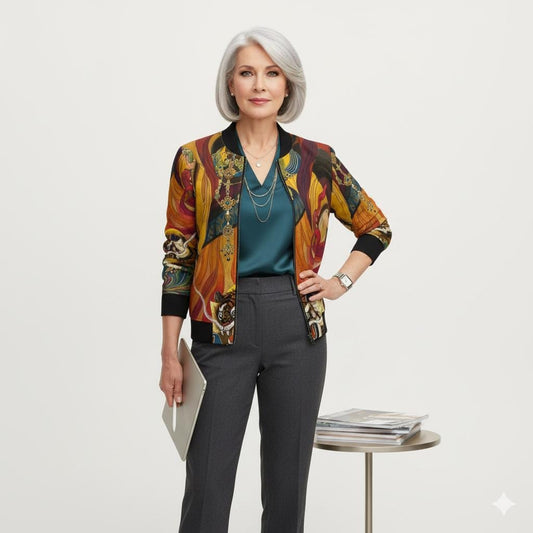 Watercolor Chinese Empress Women's Bomber Jacket, Trendy Floral Fashion Statement, Colorful Elegant Outerwear, Gift for Her, Asian Inspired