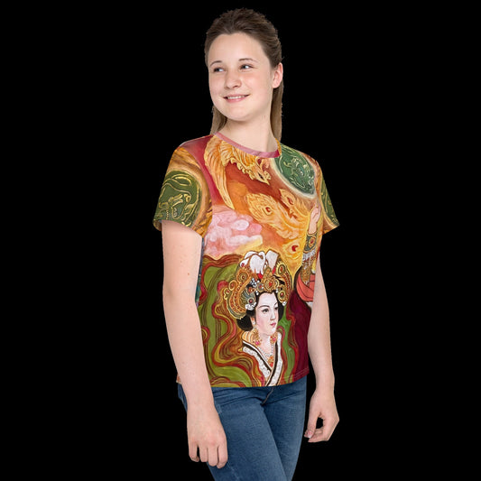 Lucky Dragon & Chinese Empress Youth crew neck t-shirt, Chinese New Year Gift, Chinese Watercolor Painting Design, Year of the Snake