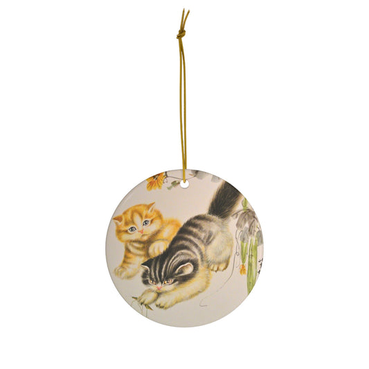 Ceramic Christmas Ornament Painting of Cats Traditional Chinese watercolor technique, cat, pet, art lover gift, cute cats, holiday present