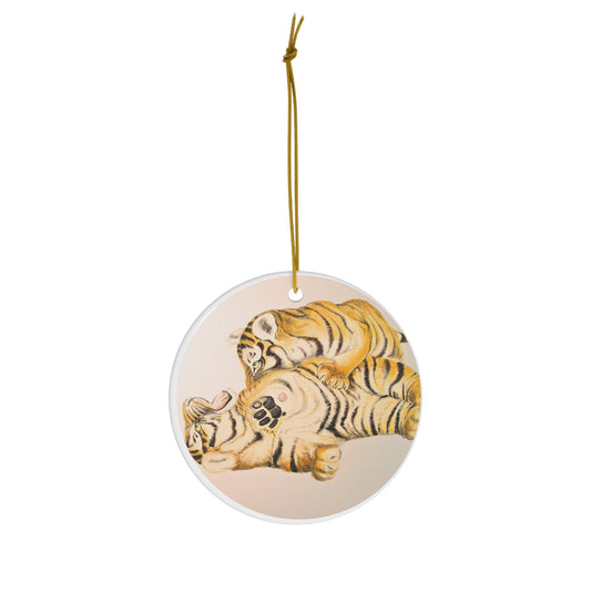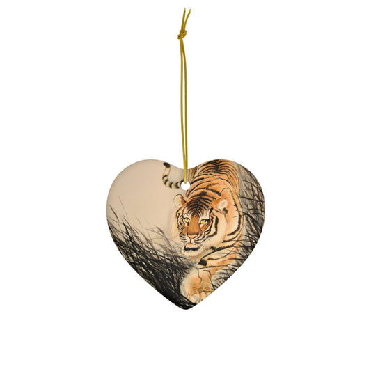 Ceramic Ornament, Tiger Chinese Watercolor, Christmas Tree Decoration, Holiday Gift, Hanging Decor, Festive Season Bauble