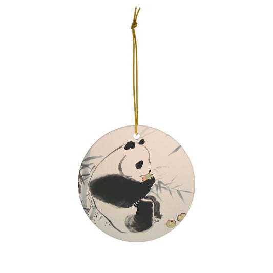 Ceramic Christmas Tree Ornament with adorable Panda in Chinese watercolor technique, animal or art lover holiday gift, present