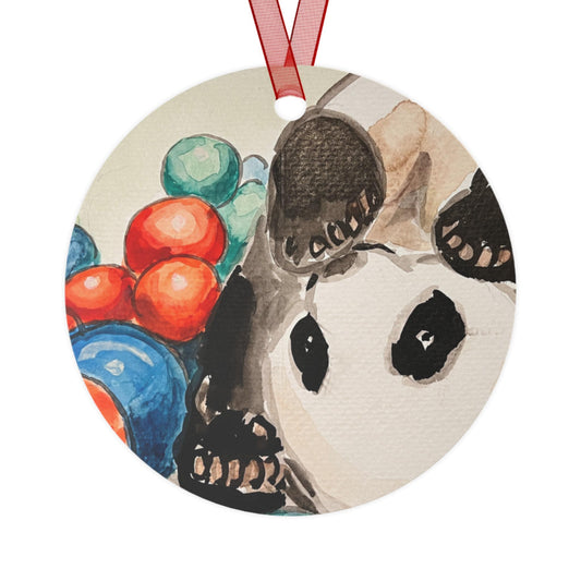 Personalized Metal Ornament, Cute Hand Painted Watercolor Panda & Balls Design, Christmas Tree Decoration, Chinese New Year, All-Year Decor