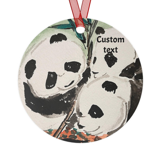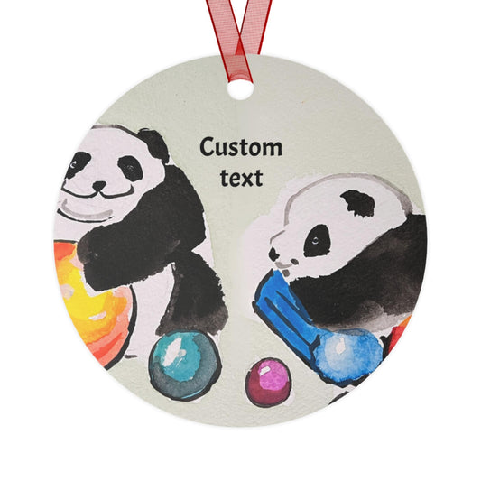 Personalized Metal Ornament, Hand Painted Watercolor, Playful Pandas Design, Christmas Tree Decoration, Chinese New Year, All-Year Decor