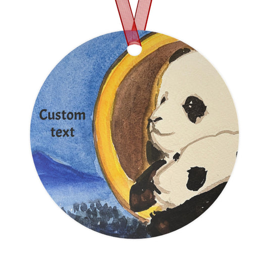 Personalized Metal Ornament, Hand Painted Watercolor, Pandas & the Moon Design, Christmas Tree Decoration, Chinese New Year, All-Year Decor