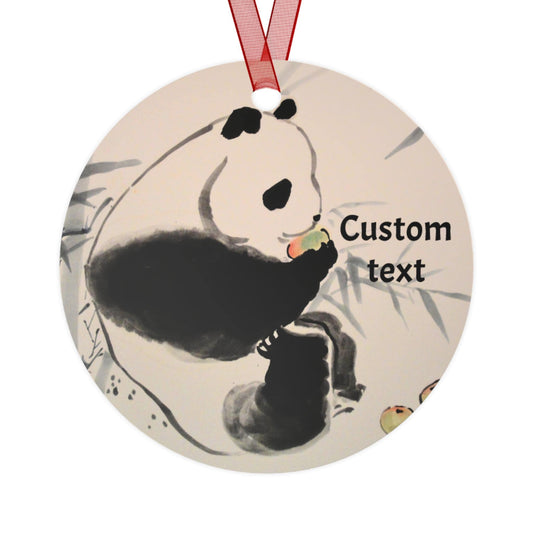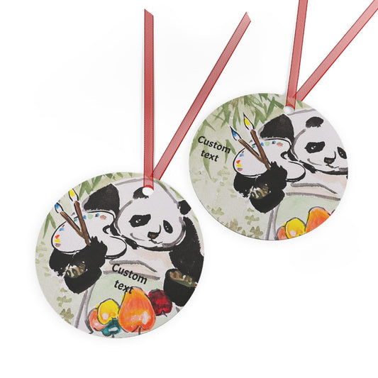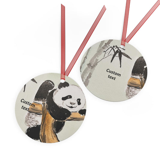 Personalized Metal Ornament, Hand Painted Watercolor, Artist Panda Design, Christmas Tree Decoration, Chinese New Year, All-Year Decor