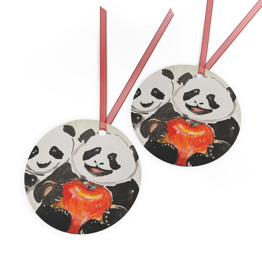 Personalized Metal Ornament, Hand Painted Watercolor Fruit-eating Panda Design, Christmas Tree Decoration, Chinese New Year, All-Year Decor