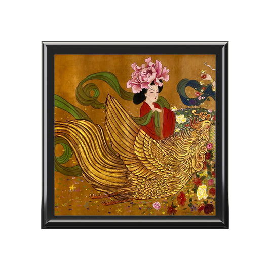 Jewelry Box | Personalized Option | Chinese Empress & Golden Phoenix, Print of Watercolor on Silk | Lunar new year gift