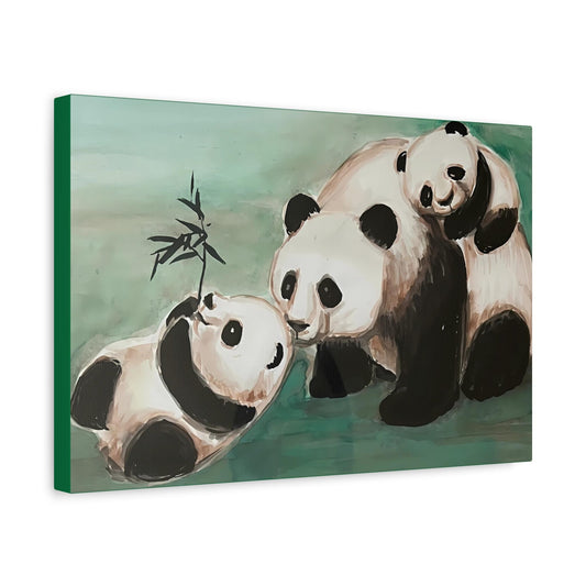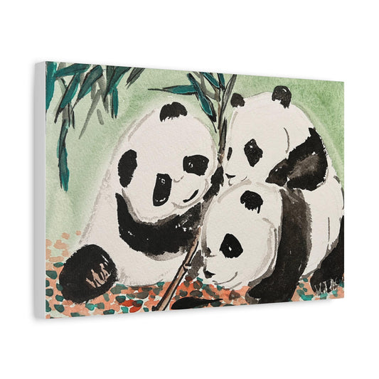 Playful Panda Family, Matte Canvas, Stretched, 0.75", Print of Watercolor painting by artist Xiang Li, Panda lover gift, Nursery wall art