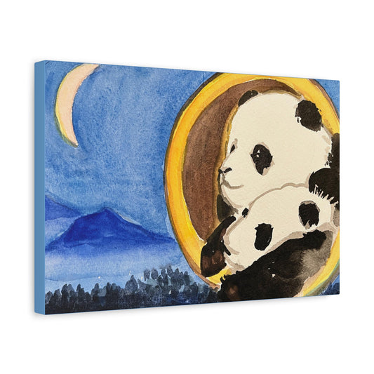 Pandas at Night, Matte Canvas, Stretched, 0.75", Print of Watercolor painting by artist Xiang Li, Panda lover gift, Nursery wall art