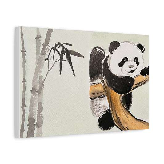 Tree climber Panda, Matte Canvas, Stretched, 0.75", Print of Watercolor painting by artist Xiang Li, Panda lover gift, Nursery wall art