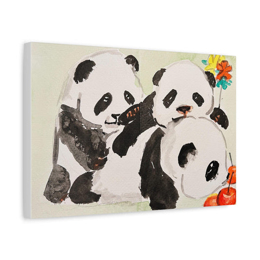 Playful Pandas, Matte Canvas, Stretched, 0.75", Print of Watercolor painting by artist Xiang Li, Panda lover gift, Nursery wall art