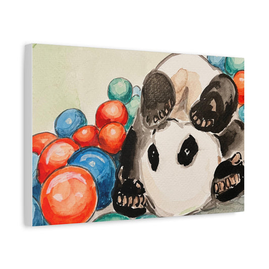Panda rolling in balls, Matte Canvas, Stretched, 0.75", Print of Watercolor painting by artist Xiang Li, Panda lover gift, Nursery Wall art