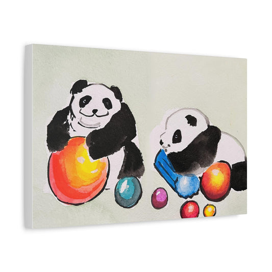 Pandas playing with balls, Matte Canvas, Stretched, 0.75", Print of Watercolor painting by artist Xiang Li, Panda lover gift, Nursery art