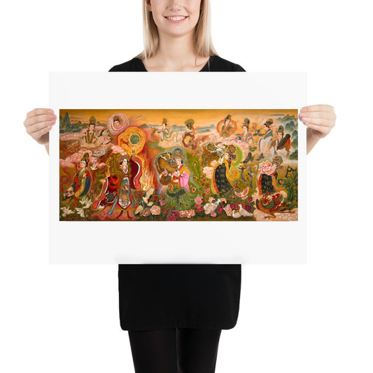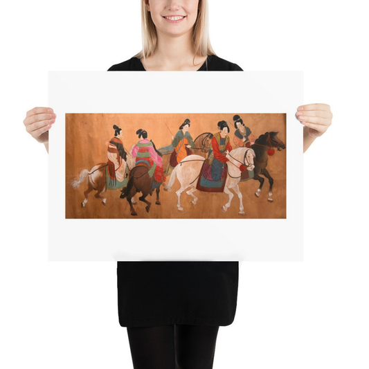 Empress Wang (Tang Dynasty), Fine Art Print, Chinese watercolor on silk, Spring Outing Excursion, Doorway, Dorm Room, Bedroom