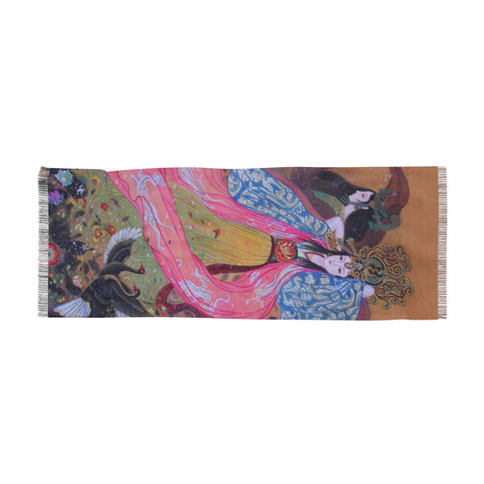 Empress Ming Dao and Empress Ming Yuan Light Scarf, water color painting, women fashion scarf, Chinese New Year gift, unique cultural gift
