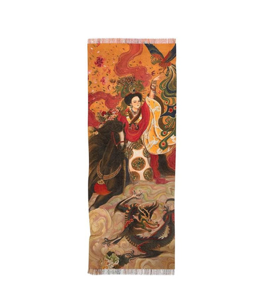 Elegant, Unique Light Scarf, Print water color painting, Chinese Empress, horse & dragon motif, Women Fashion Scarf, Chinese New Year gift