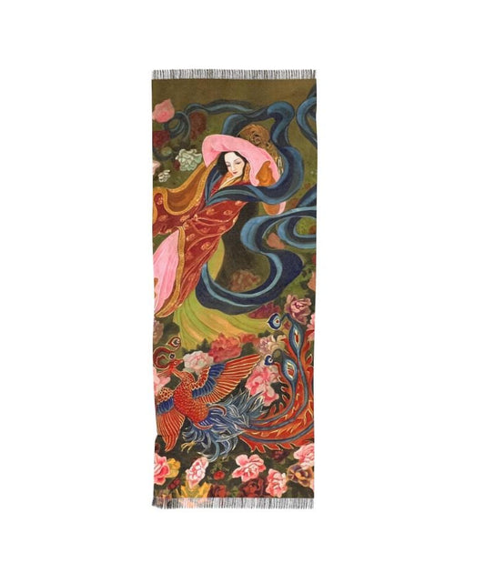 Empress Guo Nüwang Light Scarf, water color painting, women fashion scarf, Chinese New Year gift, unique cultural gift