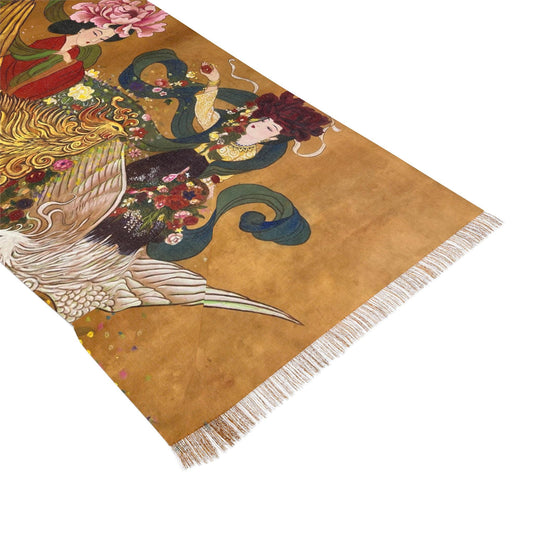 Elegant Light Scarf, Print of water color painting, Asian Empress, Peonies, Golden Phoenix, Women Fashion Scarf, Chinese New Year gift