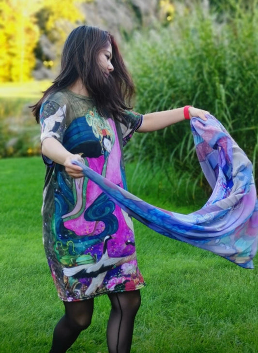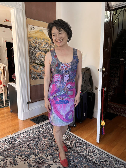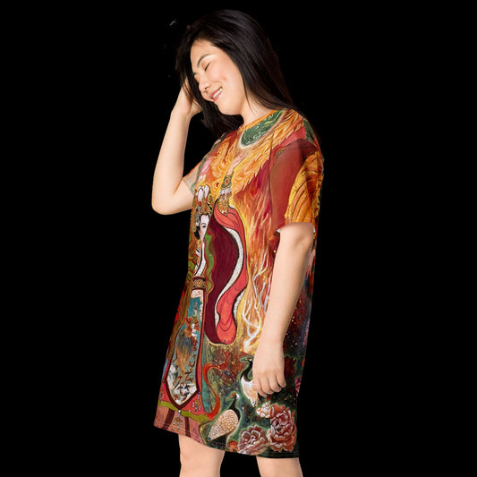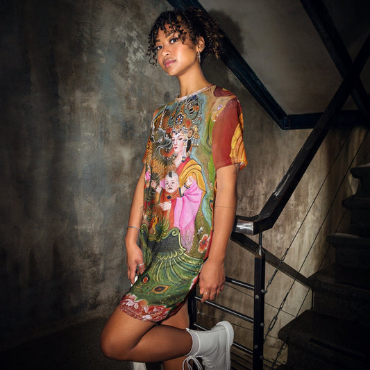 Chinese watercolor art T-shirt dress, Empress Collection by Xiang Li art