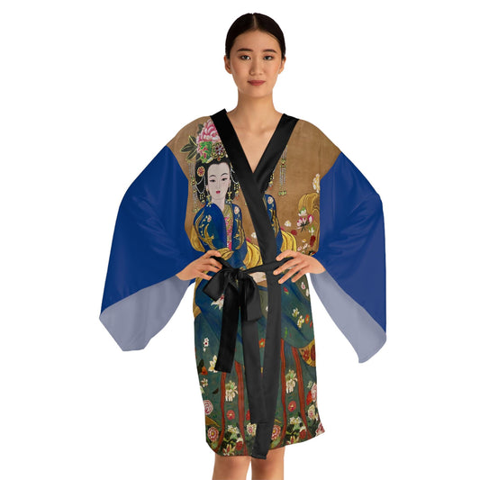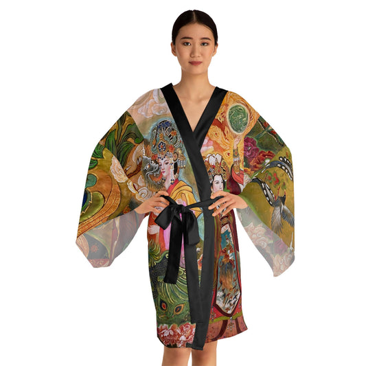 Long Sleeve Kimono Robe, print of an original hand-painted water color painting on silk of a flower Empress, flower Goddess