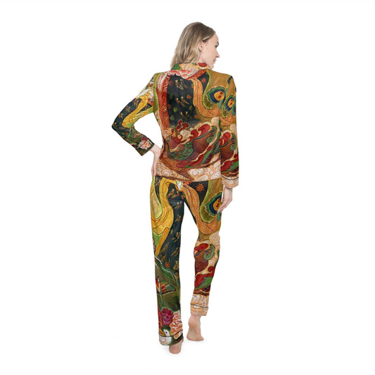 Satin Pajamas | Watercolor design by artist Xiang Li | Painting of Northern Song Dynasty Early Period Empress | floral theme vibrant colors
